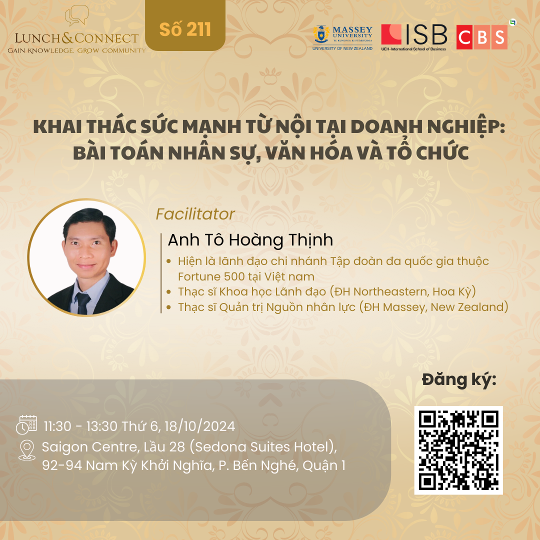 Thân mời quý anh chị cùng đến tham dự Lunch&Connect Nhân sự số 211 và cùng thảo luận về chủ đề này.